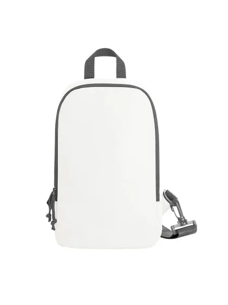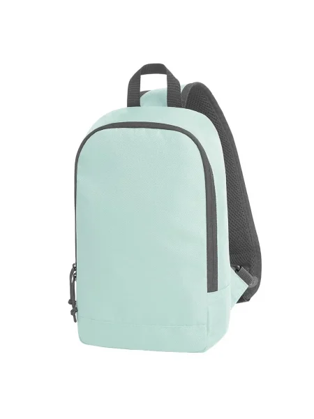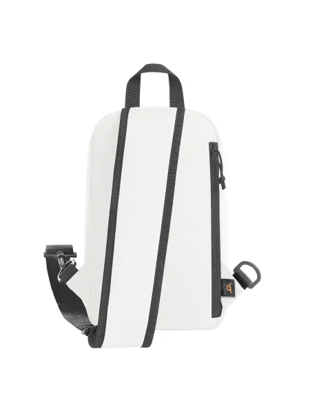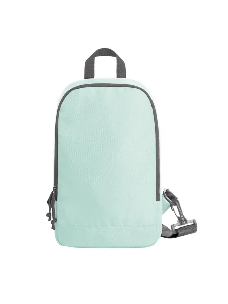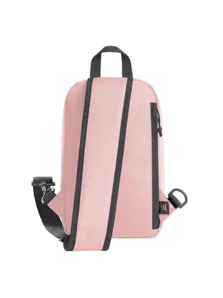 Zainetto monospalla personalizzabile, scomparto principale con cerniera a 2 vie, tasca a inserto piatta interna, tasca con chiusura lampo sul reto, spallaccio imbottito, di lunghezza regolabile e trasportabile su entrambi i lati, passante di trasporto. Dimensioni: 18x30x8 cm. Area personalizzabile: frontale 12x17 cm.