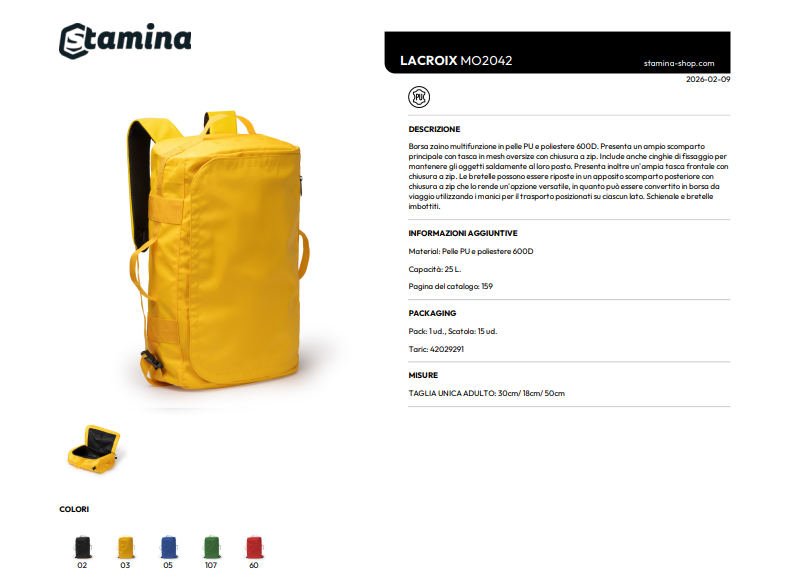Zaino multifunzionale personalizzabile Lacroix 25 L
