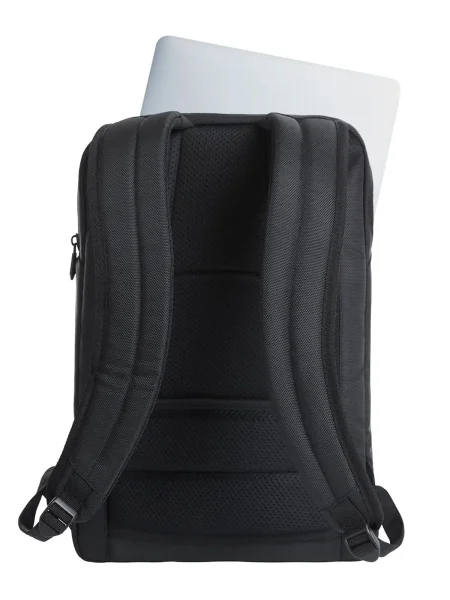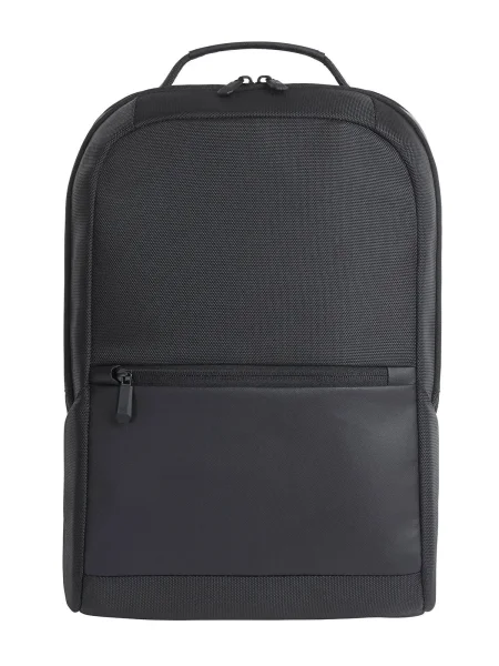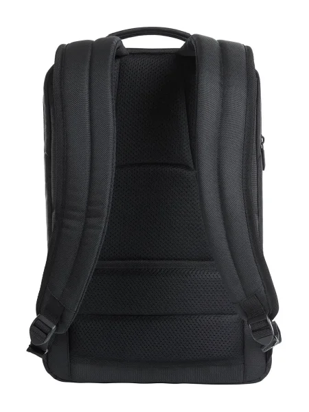 Zaino per pc portatile, tasca a inserto imbottita e scomparto a rete con chiusura lampo, ampio scomparto per notebook con accesso separato, passaggio per cavi fino allo scomparto principale, tasca anteriore con chiusura lampo, retro imbottito, passante per fissaggio all' asta del trolley, spallacci imbottiti e regolabili, manico rinforzato. Dimensioni: 30x45x15 cm. Area personalizzabile: frontale 18x11 cm.