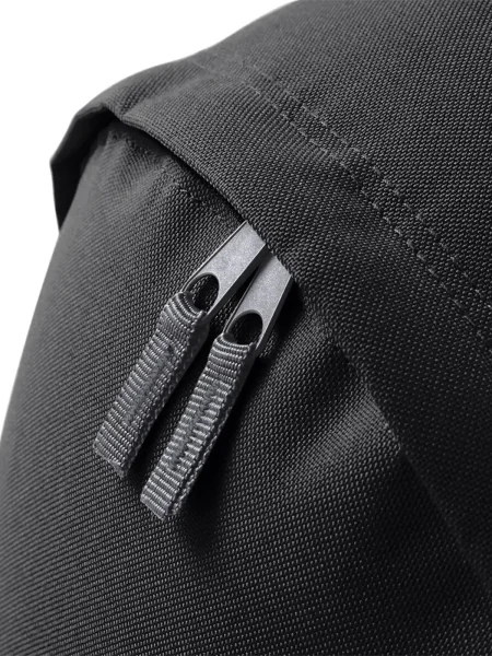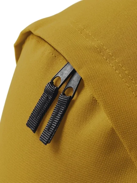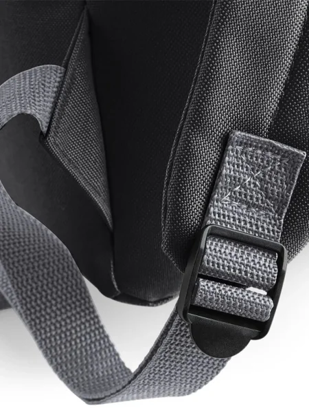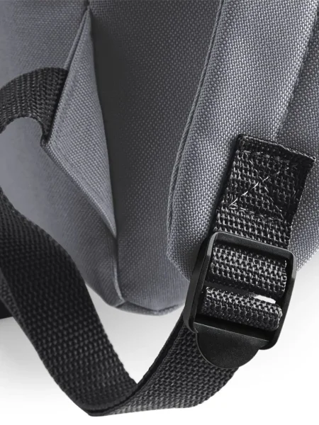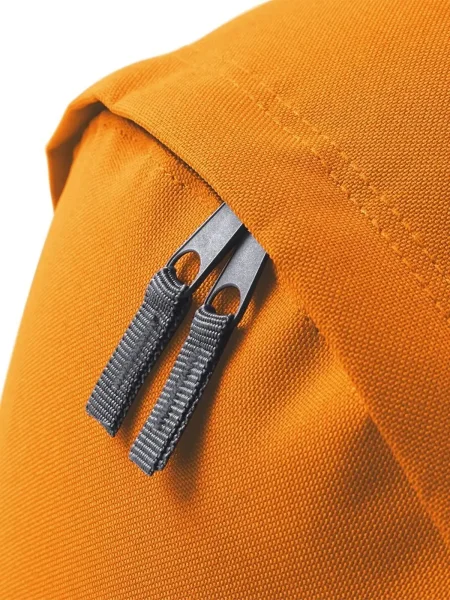 Zaino con tasca frontale con cerniera, schienale imbottito e gancio per presa a mano. Capacita': 18 litri