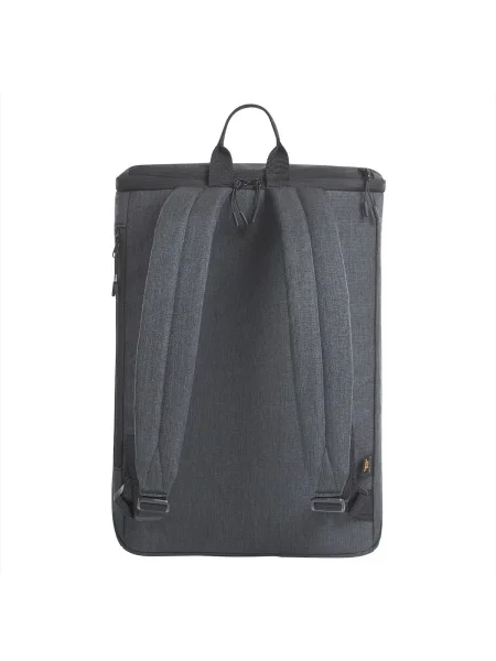 Zaini porta pc personalizzati aziendali con scomparto principale con cerniera a 2 vie, tasca imbottita per notebook, tasche a inserto interne, scomparto con coperchio e chiusura lampo, tasca anteriore con chiusura lampo riflettente nascosta e linguette di trasporto, sistema di trasporto imbottito, manico. Dimensioni: 27x40x13 cm. Area personalizzabile: sulla tasca frontale 23x22 cm. on the lid W 18 x H 15 cm