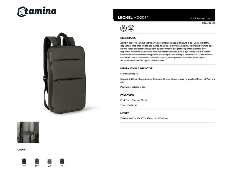 Zaino porta pc 15'' in poliuretano personalizzabile Leonel 15 L