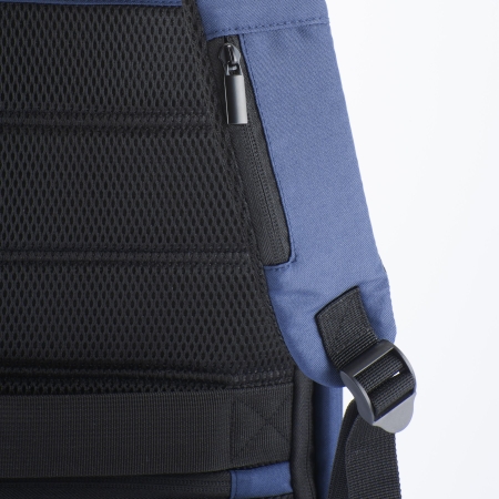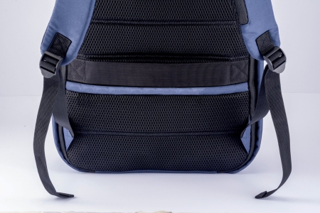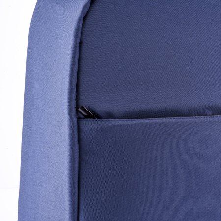 Zaino porta pc personalizzabile in pet riciclato. Compartimento imbottito per notebook con presa usb, schienale e spallacci imbottiti con materiale traspirante. Sistema di aggancio ai trolley 28x40x12 cm.