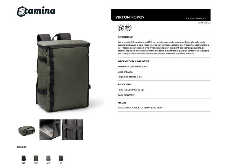 Zaino in pelle PU e poliestere 600D con ampio scomparto principale foderato nella parte superiore, chiusura a zip e tasca interna con elastico regolabile per trasportare laptop fino a 16". Presenta una tasca esterna invisibile sul davanti e sei punti di ancoraggio sul lato. Le bretelle regolabili laterali consentono allo zaino di adattarsi a qualsiasi contenuto e la cinghia per trolley lo rende comodo e versatile da usare. Schienale e bretelle imbottiti.