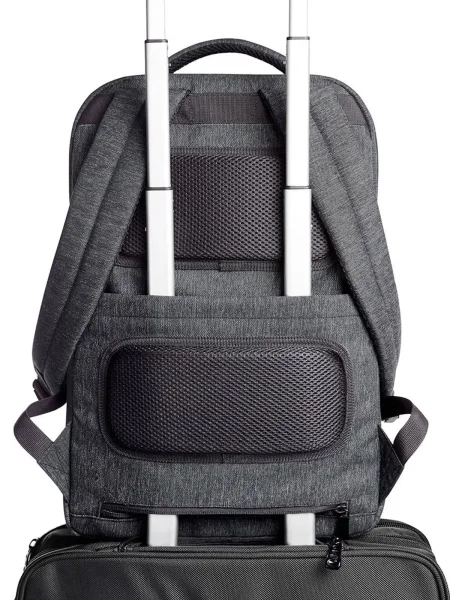 Zaino imbottito pc con lato anteriore trapuntato e supporto HFL® per l’applicazione di un logo. Dispone di una tasca anteriore con chiusura lampo e due tasche piatte a inserto, oltre a uno scomparto imbottito con chiusura lampo dedicato al notebook. È progettato per essere facilmente fissato all'asta del trolley, ed è dotato di spallacci imbottiti regolabili e di un manico imbottito per un trasporto confortevole. L’area di stampa misura 5,7 x 2,3 cm. Le dimensioni complessive dello zaino sono 33x46x12 cm.