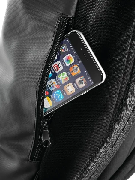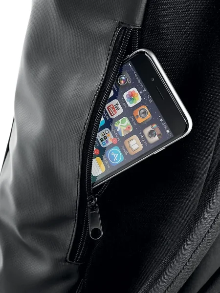Zaino in tessuto impermeabile con chiusura avvolgibile, tasca nascosta con cerniera, spalline imbottite e regolabili. Dimensioni: 26 x 43 x 13 cm, capacita': 15 litri.